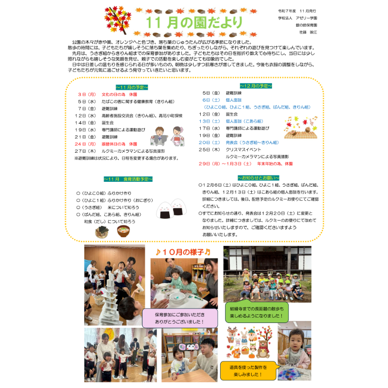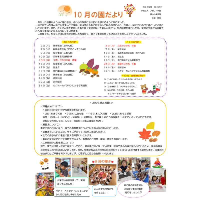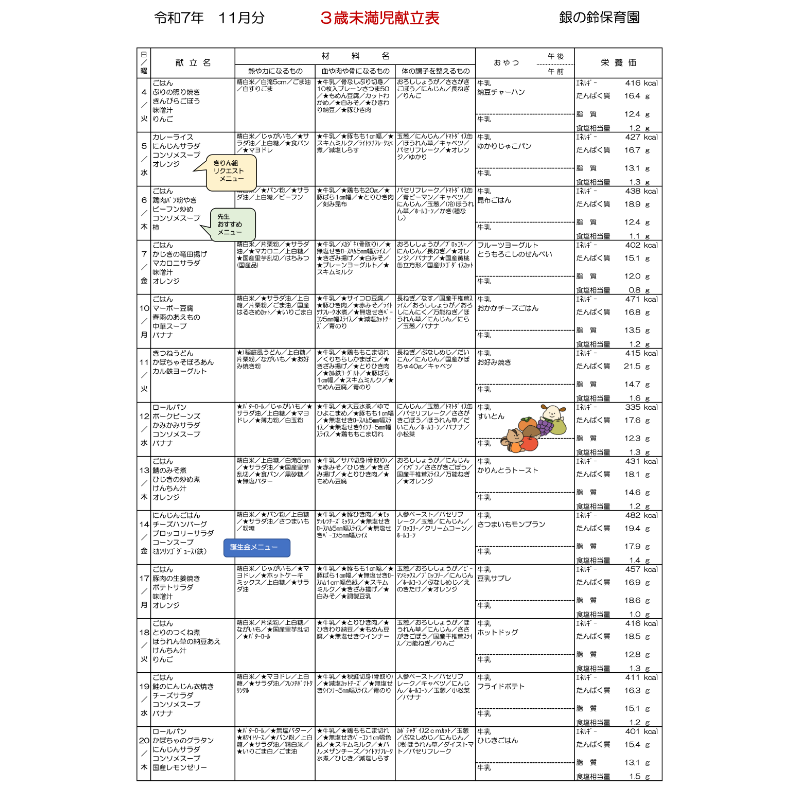 園だより/各種申請書ダウンロード各種申請書ダウンロード外用薬依頼書内服薬依頼書医師の意見書登園届インフルエンザ登園届新型コロナウィルス登園届申し込み書生活調査票健康調査票2生活調査票健康調査票4 園だより今月の園だより園だよりをダウンロード本年度の園だより バックナンバー4月5月6月7月8月9月10月11月12月1月2月3月献立表今月の献立表献立表をダウンロード本年度の献立表 バックナンバー4月5月6月7月8月9月10月11月12月1月2月3月 一つ前のページへ戻るメールでのお問い合わせ