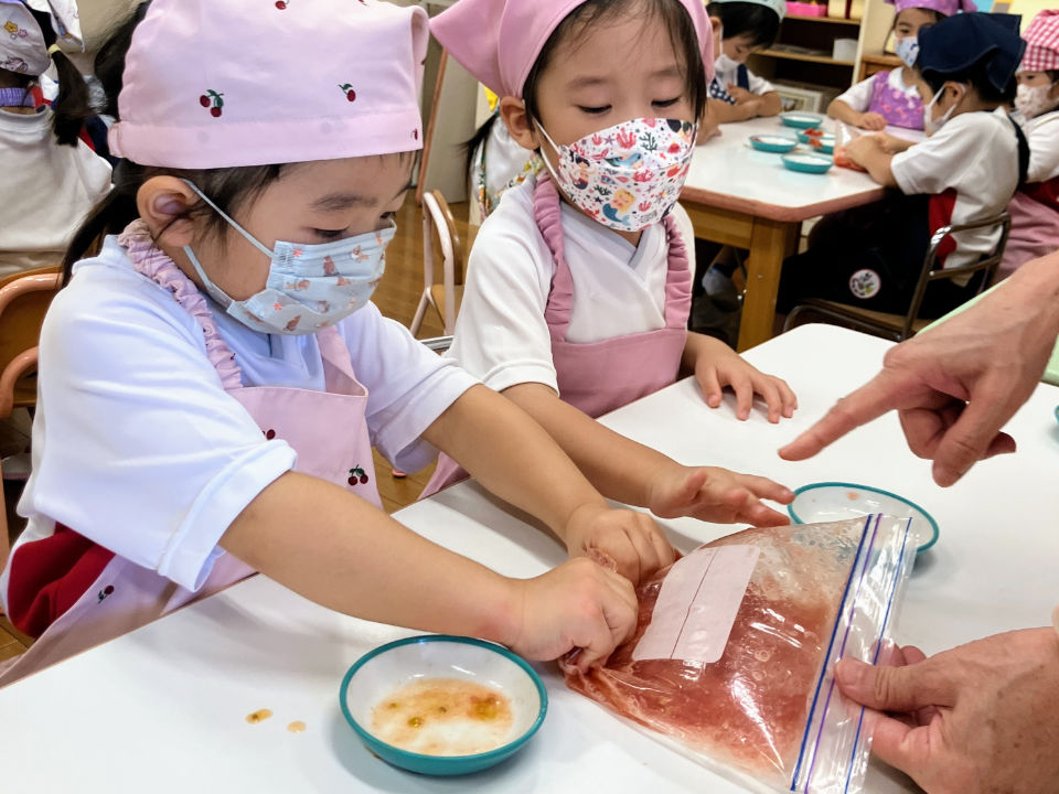 触って・見て・味わう体験を通して、子どもたちは食べ物への関心を少しずつ広げています。