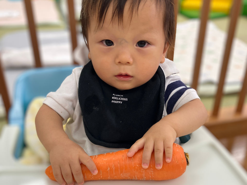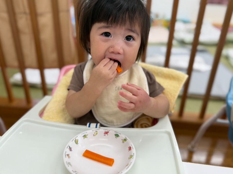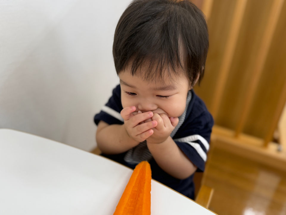 そのあと、やわらかく茹でたにんじんを食べてみると、甘みや食感の違いに気づき夢中で食べる姿が見られました。