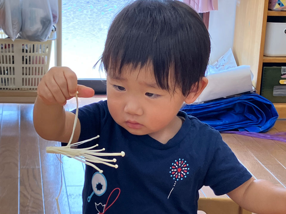 「傘みたい」「白いね~」「ぷにぷにしてる」など自分なりの言葉で表現する姿が見られましたよ。