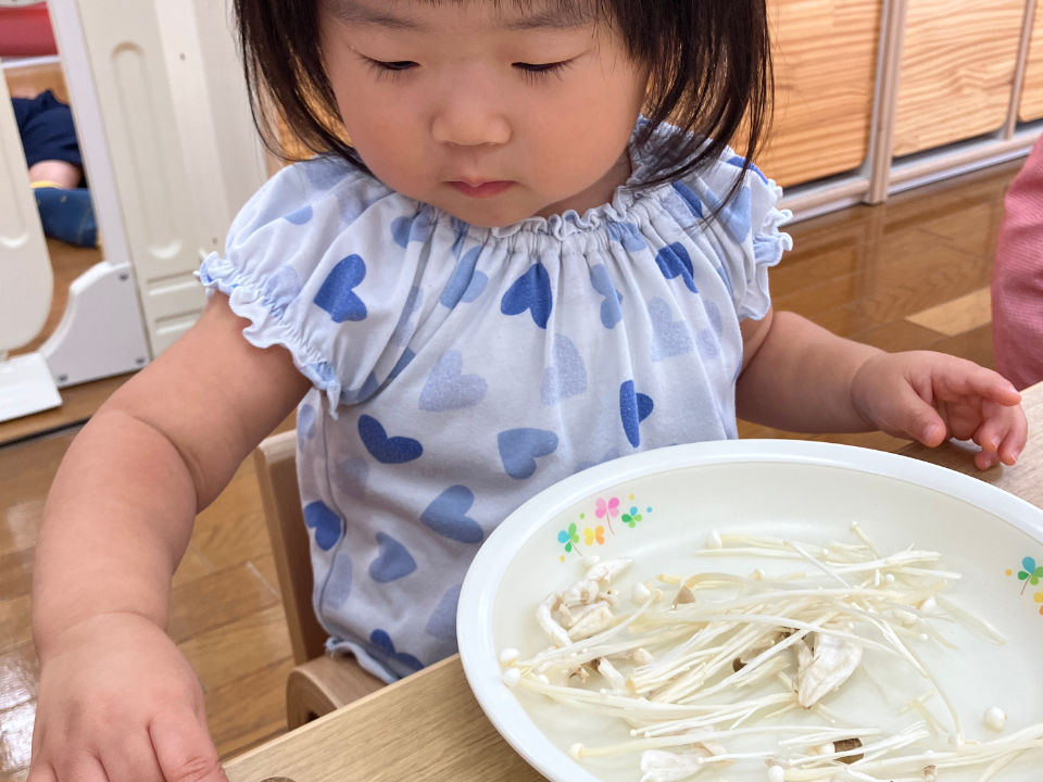 1歳児ひよこ組 『きのこほぐしときのこ汁』