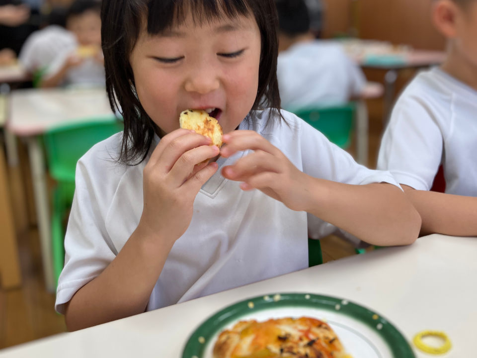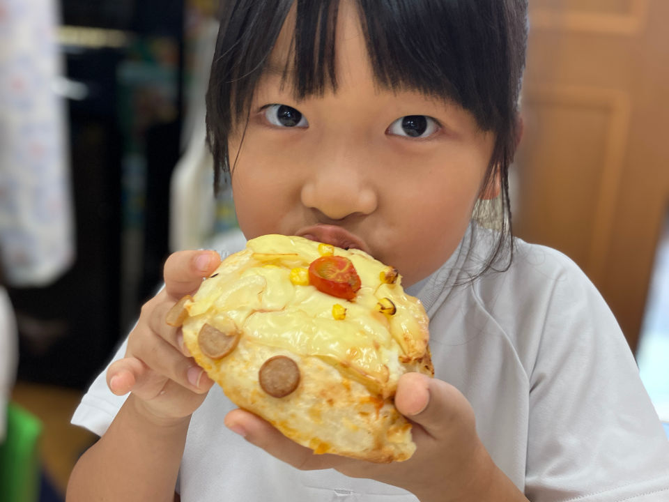 「チーズたっぷりにしよう♪」とそれぞれのピザを完成させ、大満足な笑顔で完食をしていました。