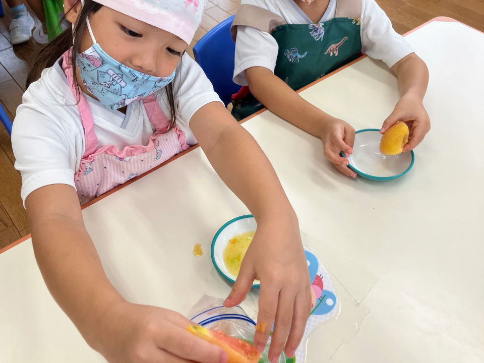 五感をいっぱい使いながら、食べ物への興味が広がった1日となりました。