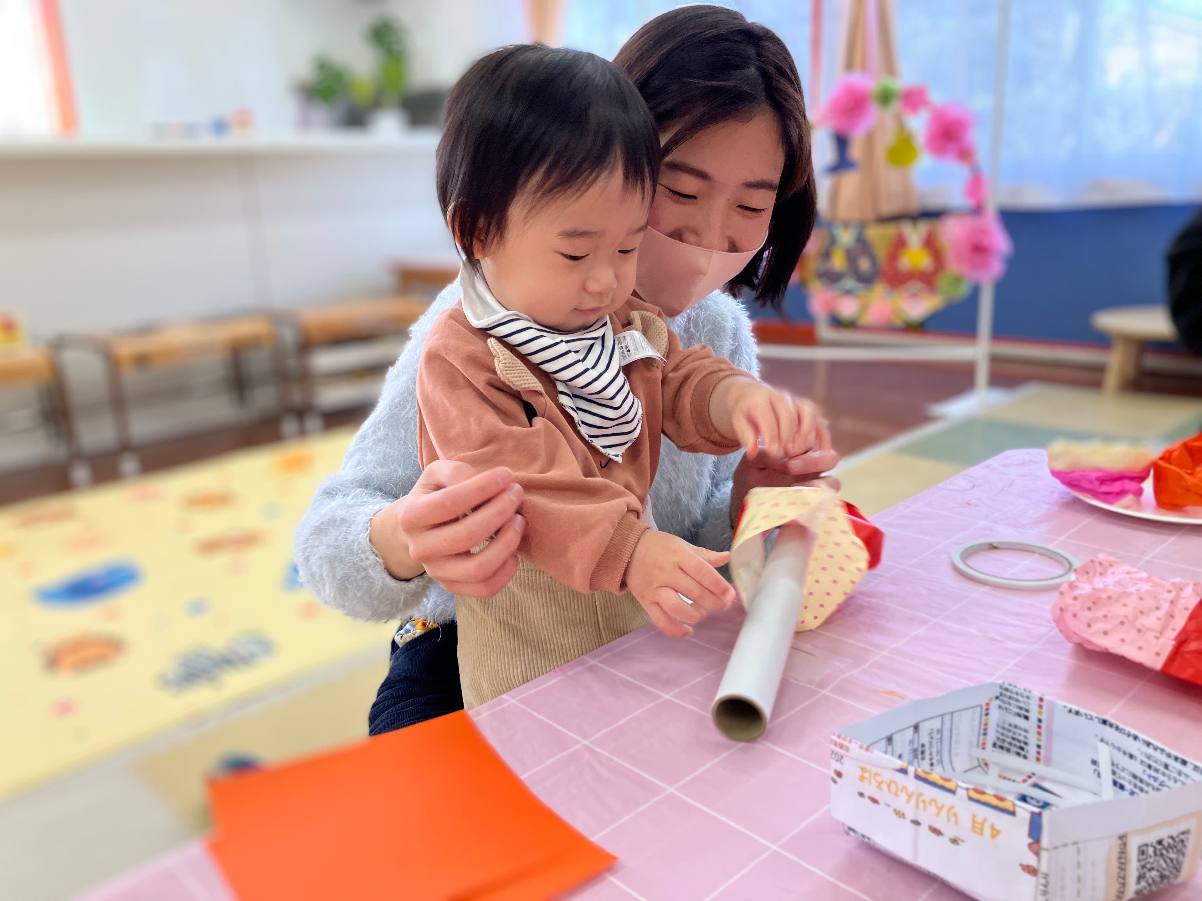 銀の鈴保育園では、地域の未就園児親子が利用できる子育て支援センター(りんりんひろば)を週5日開いています。